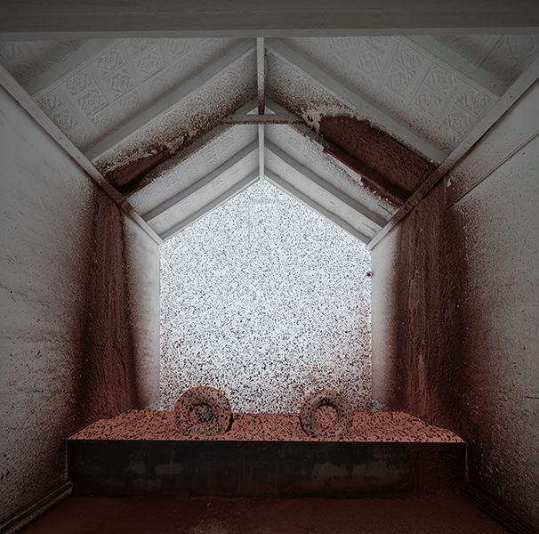 Mud Pixel / Dead Pixel, 2026 Wet clay, motor, tires, cement, digital projection 14 W × 8 D × 8 H ft