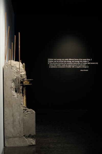Untitled (Lamp) 2008 Religious Brass Lamp, RCC pillar, Steel construction rods. 245 x 56 x45 cm
