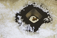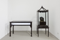 Chamber B 2012 Golden tooth,3D Hologram,Museum Vitrine, Bronze, cement and coin. 91x40x59 cm