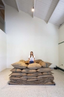 excess poverty and wealth by trapping visitors in a Panic Room inflated with jute sacks